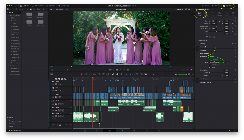 Với phiên bản Davinci 17 thì bạn có thể chống rung ngay ở Edit Page tại cửa sổ Inspector.