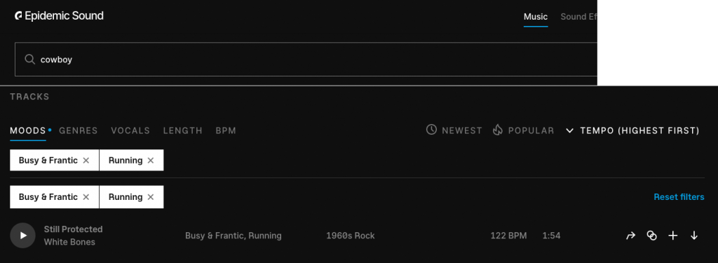 Thậm chí sau khi mình đã có cả chục ngàn bài hát trong máy thì mình vẫn thường truy cập Epidemic Sound để sử dụng bộ lọc tìm kiếm cho nó nhanh.