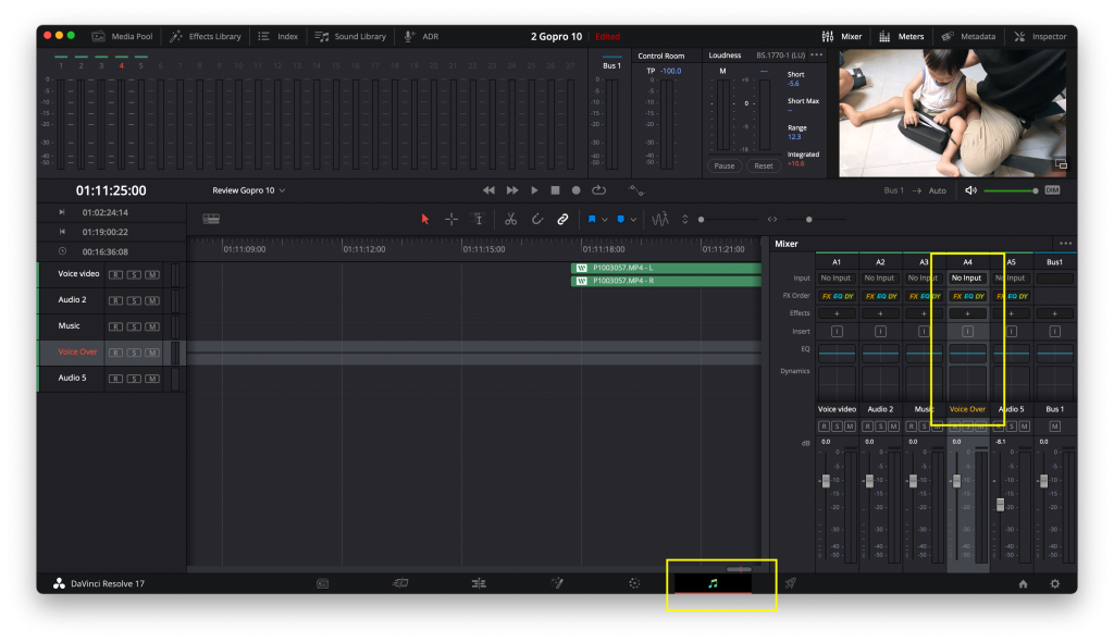 Chúng ta sẽ thu âm ở Fairlight page (shift + 7)